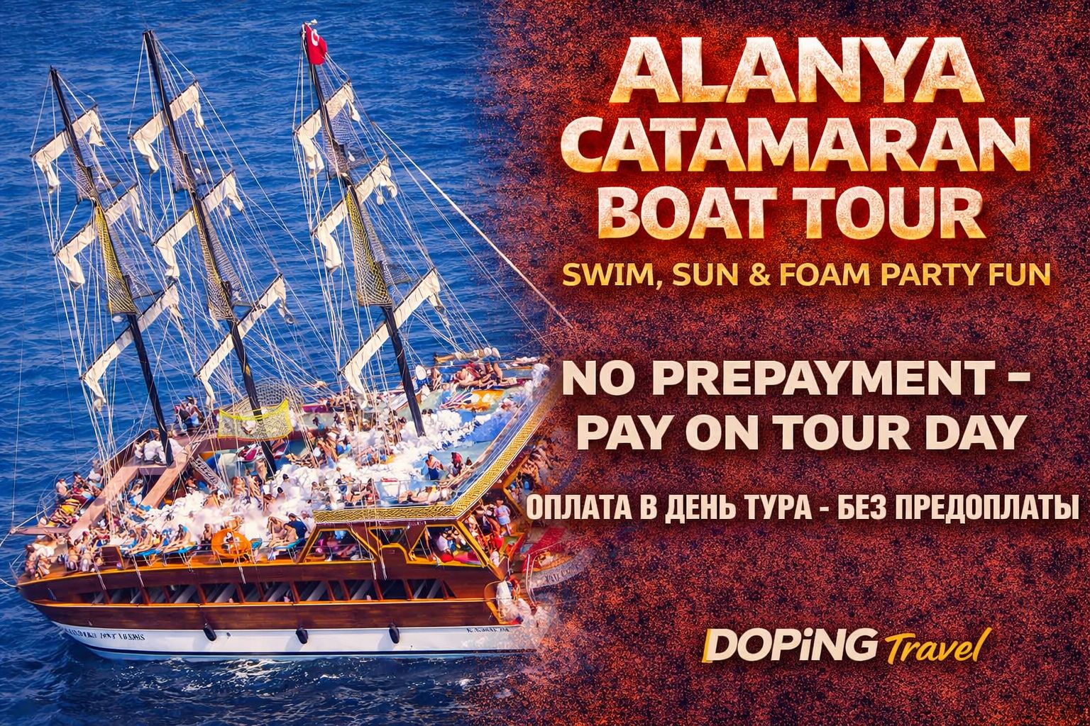 To codzienna wycieczka rozrywkowa organizowana na naszym katamaranie. Ta wycieczka, podczas której zobaczysz słynną na całym świecie plażę Kleopatry, historyczne jaskinie i najpiękniejsze plaże, a także będziesz cieszyć się imprezą z pianą i zabawnymi zajęciami, czeka na Ciebie w Alanyi.