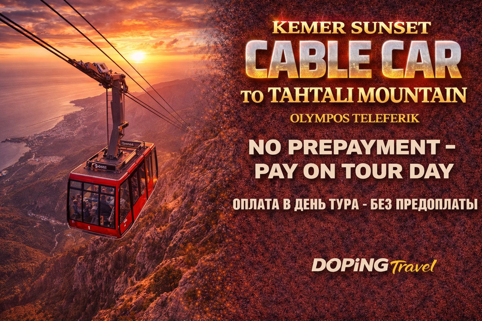 Your evening begins with a comfortable transfer from your hotel in Antalya to the cable car’s lower station, located at 726 meters above sea level. From here, you’ll board the impressive Olympos Teleferik for a breathtaking 12-minute ascent to the summit.